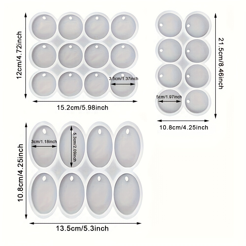 TEMU 귀걸이 펜던트 열쇠고리 애완동물 태그용 28구 평면 라운드 실리콘 수지 주형, 반짝이는 표면, 직사각형 모양, 내구성 있는 소재