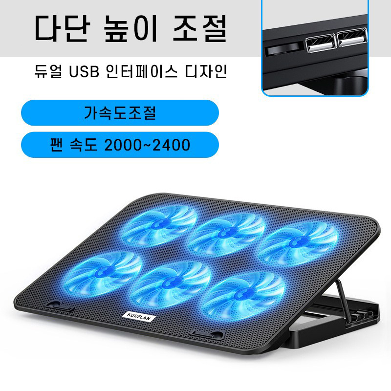 TEMU KORELAN 노트북 쿨링패드 강력 터보팬 게이밍 노트북 전용 13-18인치 높이조절 노트북 액세서리, 강풍, 6팬 디자인