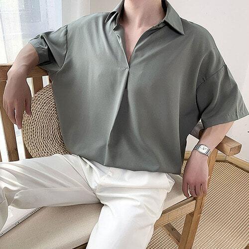 [아이에스이랩]c28 오버핏 반오픈 반팔 카라 셔츠 I2SH007