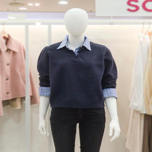 [숲]셔츠카라 배색 레이어드 니트 SBBLK31A