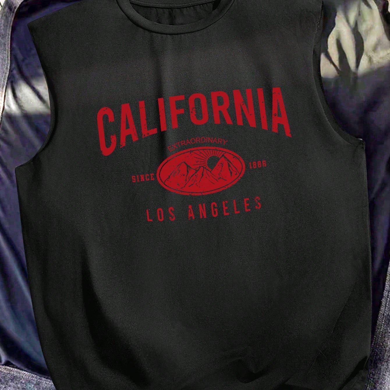 TEMU 남성용 캘리포니아 그래픽 민소매 탱크탑 - 빈티지 1781 프린트 러닝, 비치웨어 & 캐주얼 착용 | 통기성 레귤러 핏 세탁 가능 여름용 탱크탑