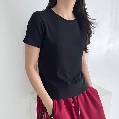 U넥 스판 클래식 롱티셔츠 여성 골지 여자반팔 WFKPDAH