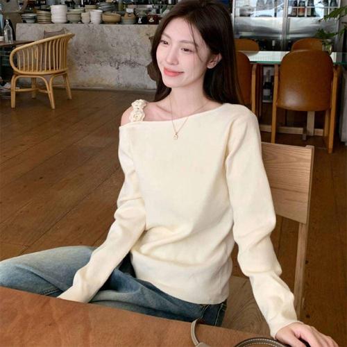 [다잇템_패션]여성용 팔꿈치 FW 조각 U넥 시즌 티셔츠