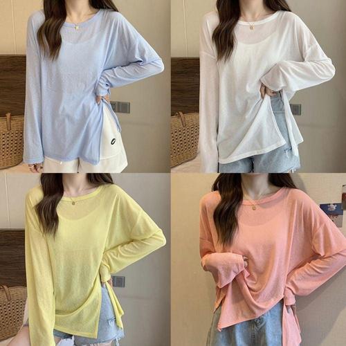 니트티 여성긴팔 깊은U넥티셔츠 여성 여성긴팔면 WFKPDDU