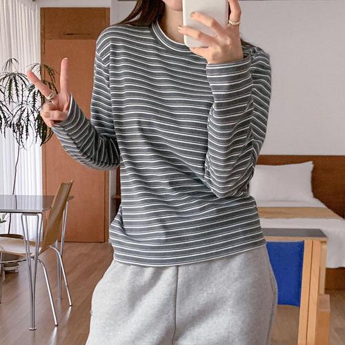 [다잇템]여자 양기모 단가라 편한 클래식 U넥 티셔츠