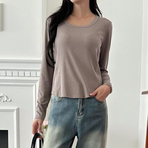 [다잇템]여성 U넥 롱슬리브 베이직 피치기모 스판티